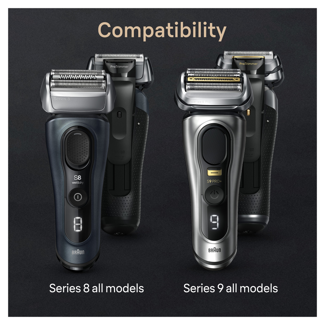 The Powercase is fully compatible with all Braun Series 9 and Series 8 electric shavers