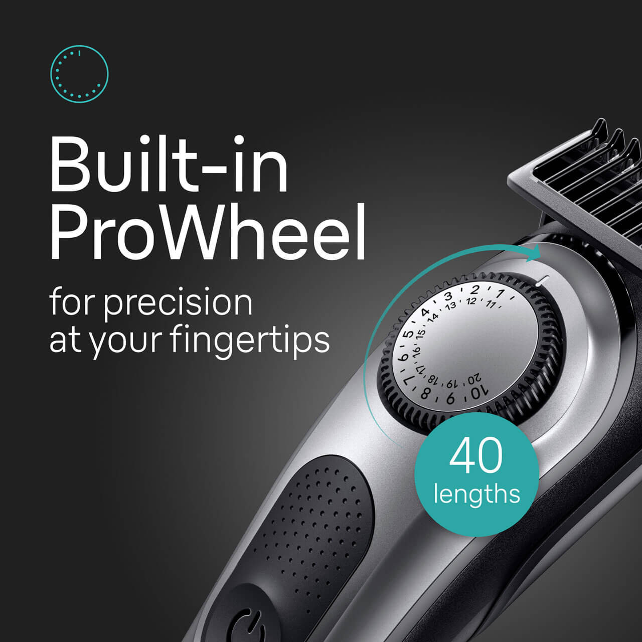 The Precision Wheel features 40 length settings in 0.02” steps and ProLock to lock your selection for no mistakes, plus beard and hair combs for lengths 0.5 mm - 20 mm
