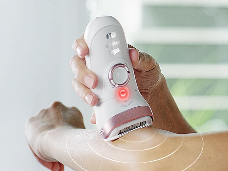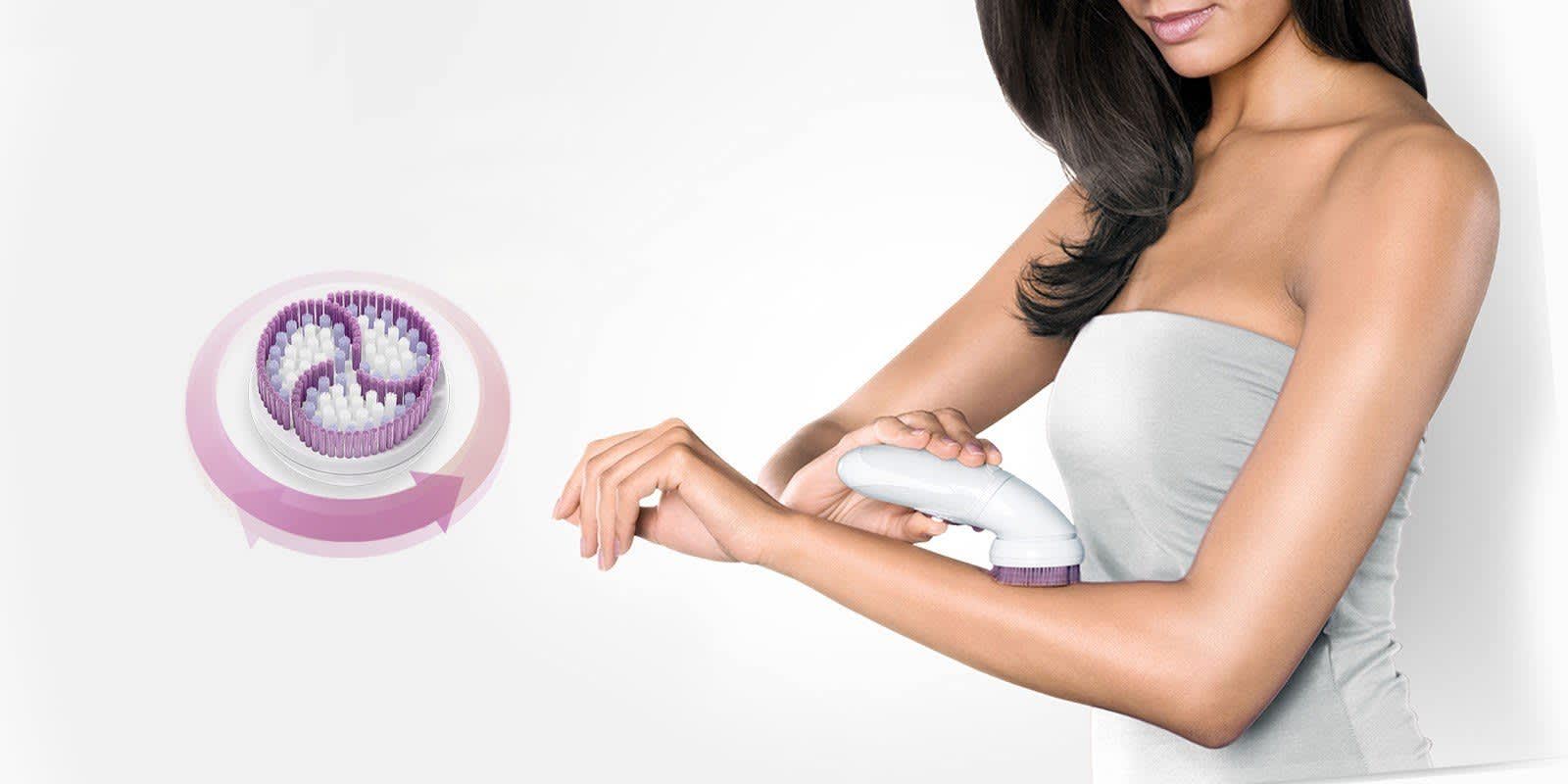 After epilating, exfoliation helps to refresh the skin’s surface appearance by removing dead skin cells to reveal smoother new skin beneath. It also prevents hair follicles from becoming clogged, and avoids unsightly ingrown hairs. For best exfoliation results, use Braun Silk-épil Beauty Set – epilator and exfoliator in one device. The exfoliation brush removes dead skin cells at over 3,000 micro-vibrations a minute, for results that are better and more even than with a manual scrub.