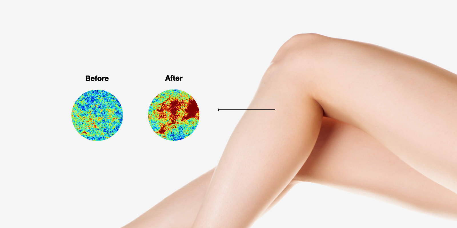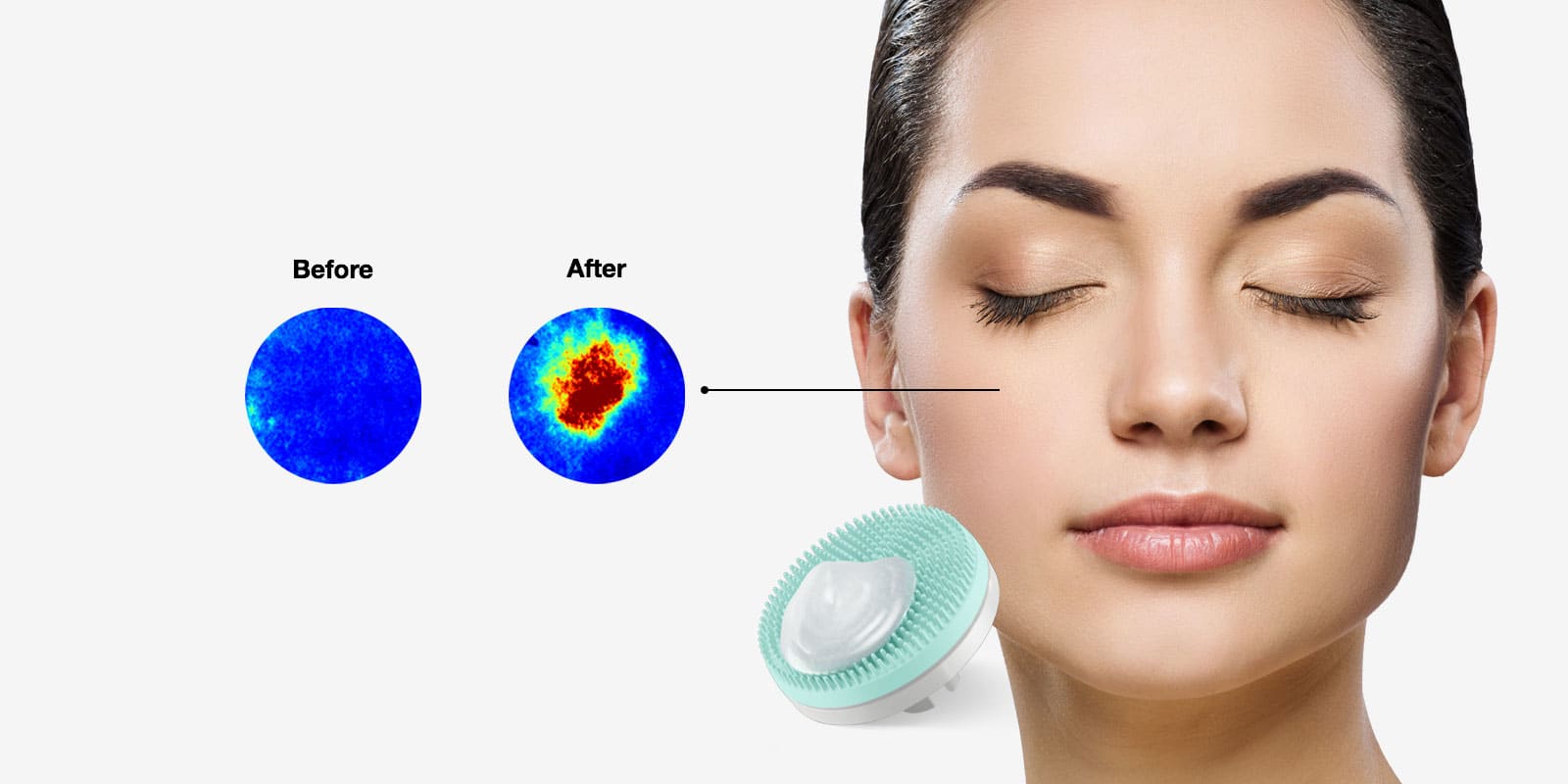 Let us focus on what goes on under the surface and discover how we can help our skin with what happens there. One of the most efficient ways to improve blood circulation is massaging your skin. Here you can see the effect.