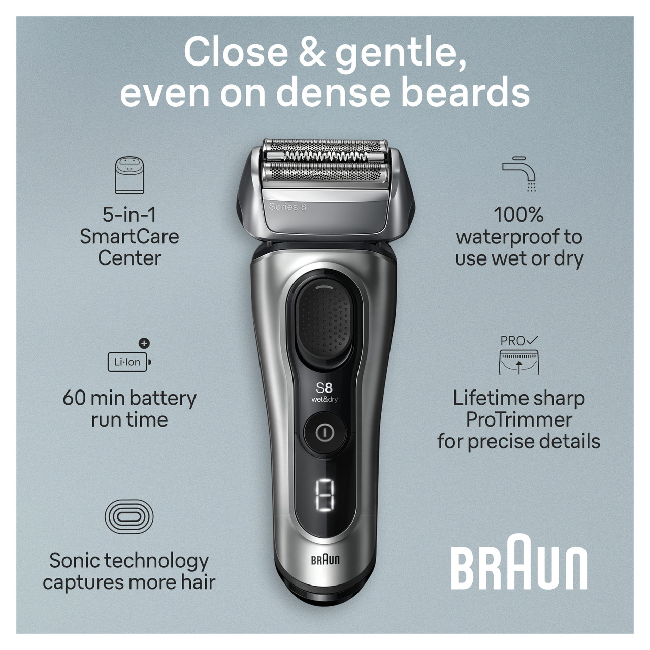 Braun Series 8 8567cc Men's Electric Shaver with built-in Precision Trimmer, 5-in-1 SmartCare Center, Fabric Razor Travel Case and Cleaning Brush