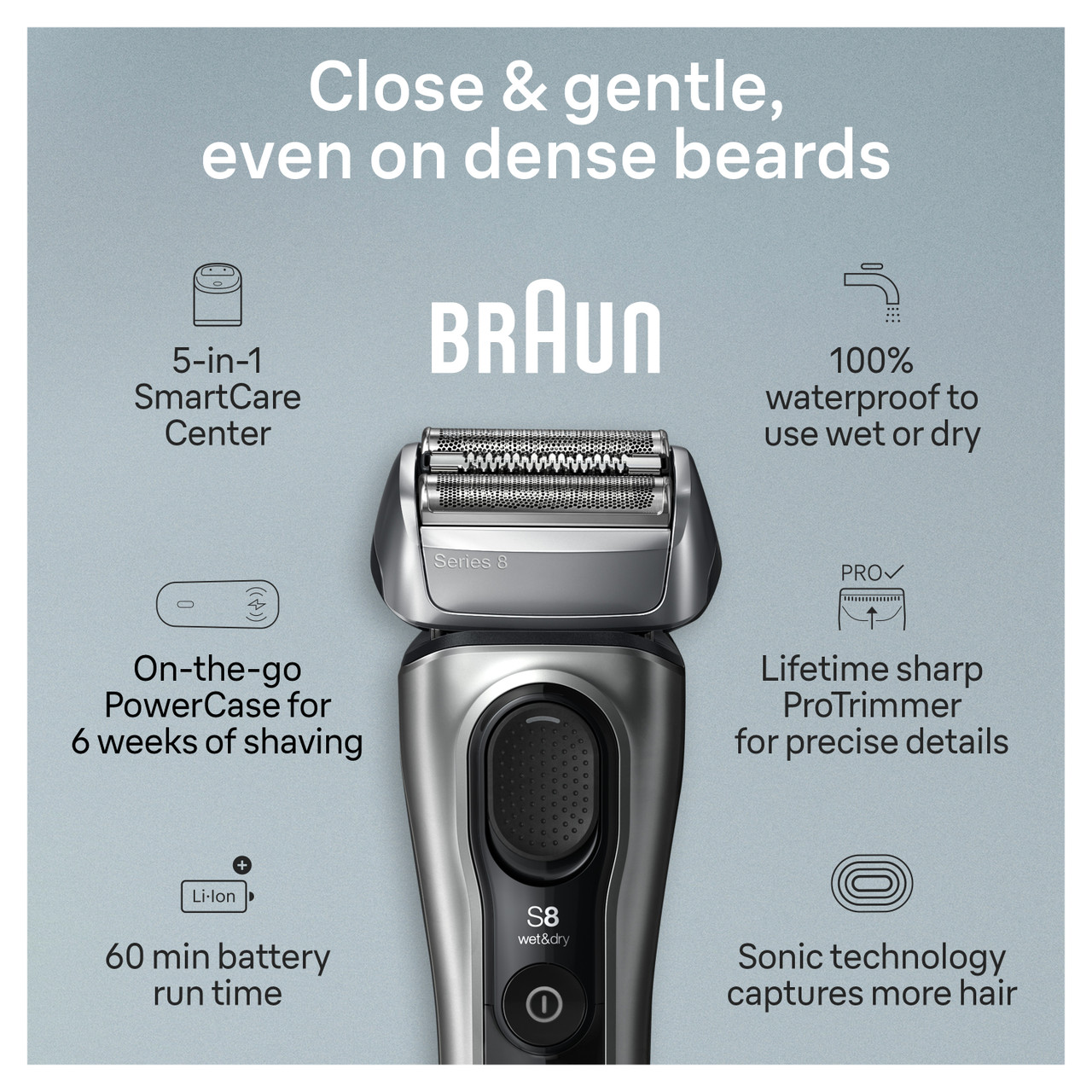 Braun Series 8 8577cc Men's Electric Shaver with built-in Precision Trimmer, 5-in-1 SmartCare Center, Mobile Power Case, and Cleaning Brush